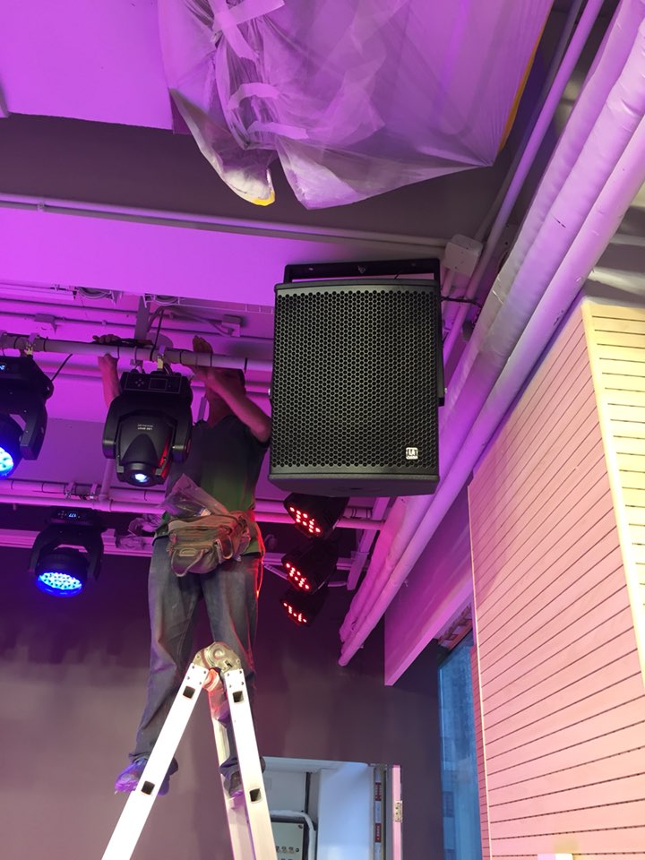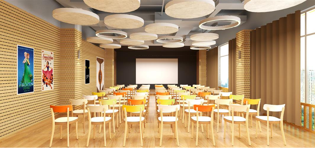 活動室天花采用了抽象幾何圖形設(shè)計,Top62白色懸掛音箱的加入不但沒有影響本來的天花造型,還出色地為整個空間提供足夠的聲場需要。