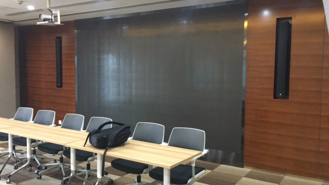 輝瓏科技的技術(shù)人員在充分考慮會(huì)議的實(shí)際應(yīng)用需求前提下為項(xiàng)目設(shè)計(jì)了一套穩(wěn)定易用隱藏式音頻系統(tǒng)。會(huì)議室前端的主講大屏幕兩側(cè)隱藏安裝了2只Caro12.3音柱負(fù)責(zé)主擴(kuò)聲,Caro12.3音柱選用12只3寸定制單元,垂直覆蓋角度20度,聲能量集中覆蓋聽(tīng)眾,避免能量投射到天花板或地面,天花板上均勻安裝了12只Rio82吸頂揚(yáng)聲器負(fù)責(zé)中廳和后廳的補(bǔ)聲,Rio82覆蓋角度100度,兩分頻設(shè)計(jì),具有寬廣的頻率響應(yīng),為會(huì)議室提供均勻清晰的補(bǔ)聲。